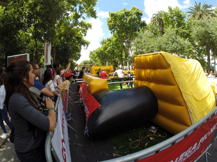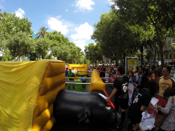 Os MATRAQUILHOS HUMANOS é um campo de futebol insuflável, onde os jogadores permanecem atados a uma barra de ferro gigante e têm que se movimentar em conjunto, sempre lateralmente!