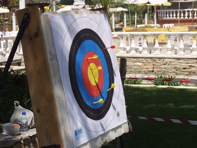 O objetivo do jogo é acertar com o maior número de setas no centro do alvo.