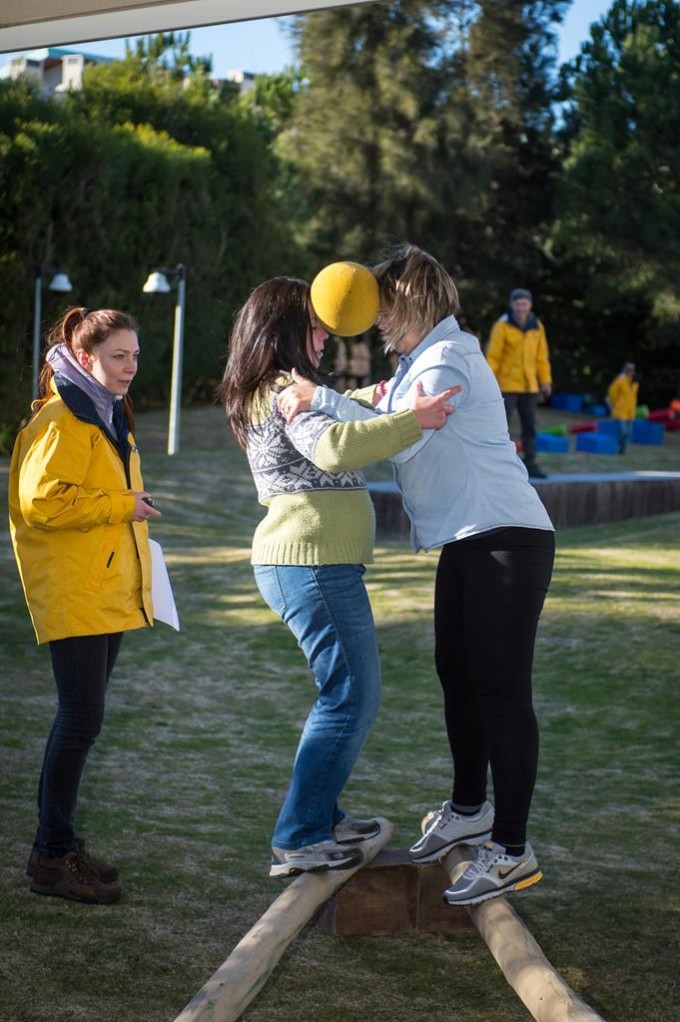 Esta prova consiste em caminhar o máximo possível, dois a dois, cada um sobre as slacklines ou troncos, que estão colocadas em forma de V. Pode ter ainda a variante da dupla transportar uma bola.