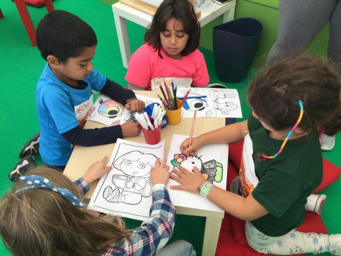 Este é um atelier com lápis de cor, lápis de cera, giz, tintas, pincéis, aventais (proteger a roupa), canetas e desenhos que podem ser pintados pelos pequenos artistas. No final, a criança pode levar consigo a sua obra de arte.