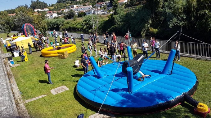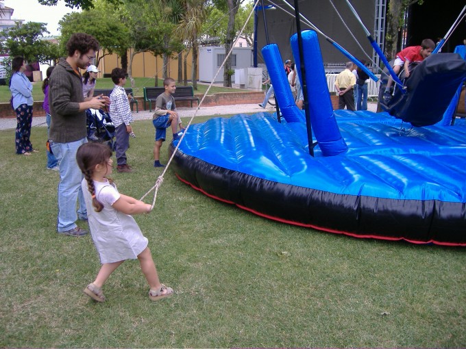 Um elemento domina o touro enquanto quatro adversários se unem para o fazer cair. Estes, movimentam o equipamento tracionando cordas em sentidos opostos. A queda será tanto mais rápida quanto mais coordenados estiverem os adversários. Ganha o elemento que se conseguir equilibrar por mais tempo. Suspenso numa estrutura metálica e tendo como base um confortável insuflável que apara as quedas, o BUNGEE BULL recomenda-se para competições e dinâmica de grupo.