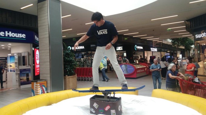 No SNOWBOARD MECÂNICO dispensamos a neve… O equipamento simula os movimentos de um verdadeiro atleta deste desporto de inverno.